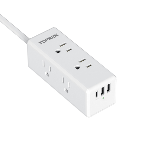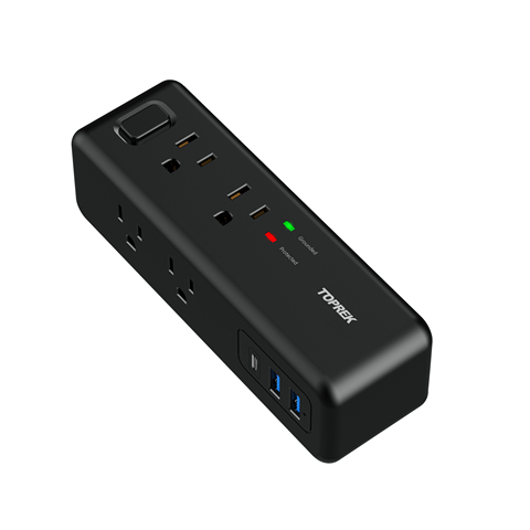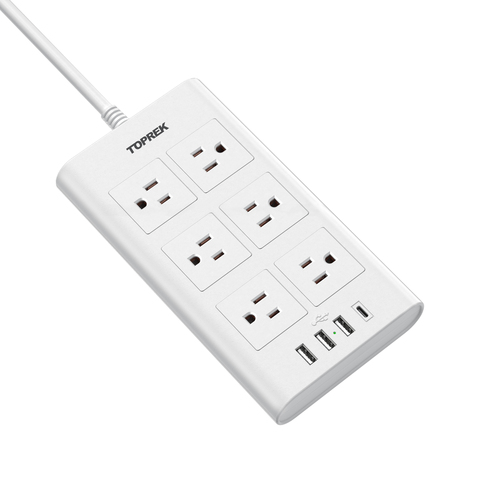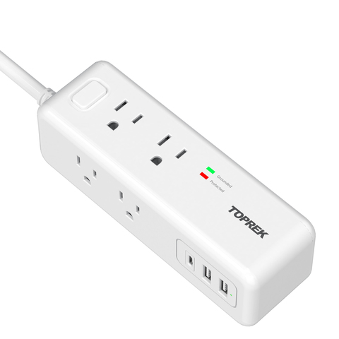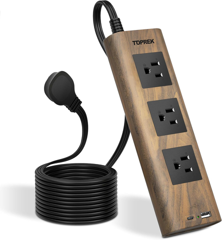 แถบพลังงาน toprek พร้อมตัวป้องกันไฟกระชาก USB (1800J) ปลั๊กไฟ AC เว้นระยะอย่างกว้างขวาง USB-C 1ชิ้นและ1 USB-A แผ่นไม้