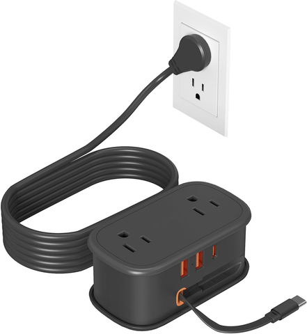 Toprek รางปลั๊กไฟสำหรับเดินทางรางปลั๊กไฟแบบแบนพร้อมสาย USB C แบบยืดหดได้อุปกรณ์สำหรับการล่องเรือ