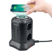 TOPEREK ปลั๊กไฟเต้าเสียบแบบไร้สาย,ปลั๊กไฟพ่วงอัจฉริยะพร้อมที่ชาร์จแบบไร้สายป้องกันไฟกระชากจากเต้าเสียบ4ช่อง USB และ6ช่อง